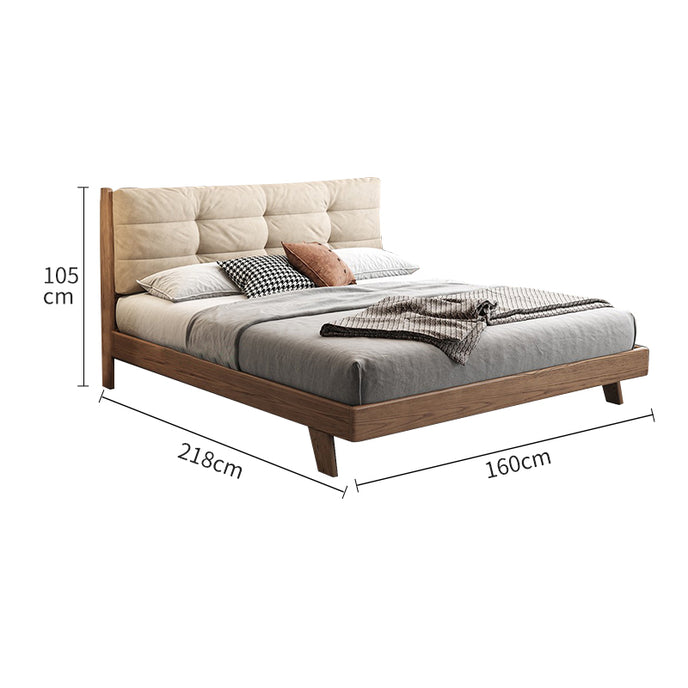 Pre Sale Walnut-Stained Ash Wood Bed with Cloud-Like Fabric Headboard