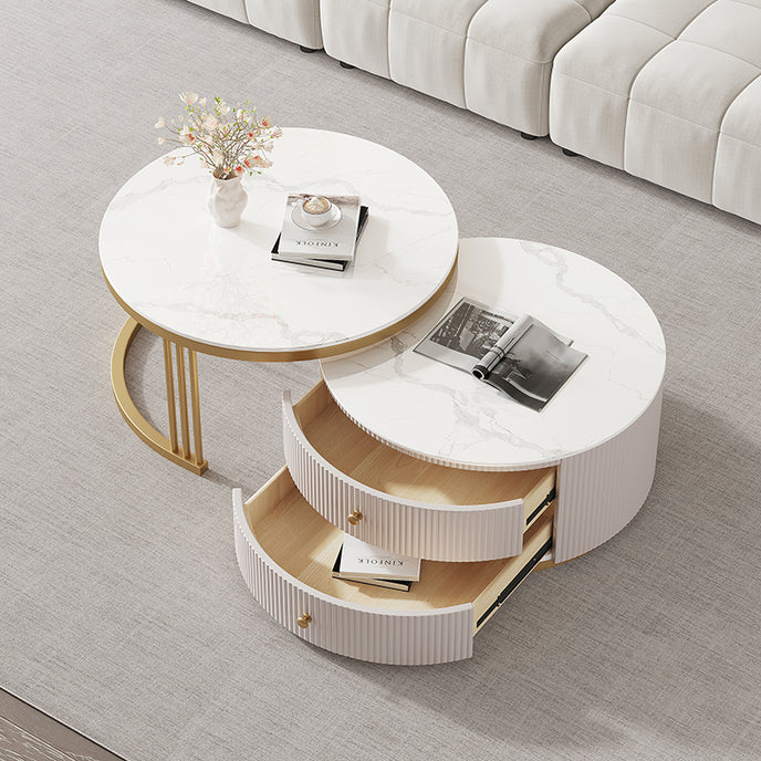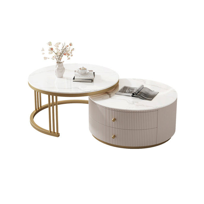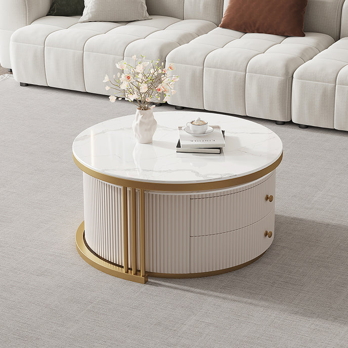 Pre Sale Circular White Rock Panel/Cabinet Golden Iron/Small Coffee Table