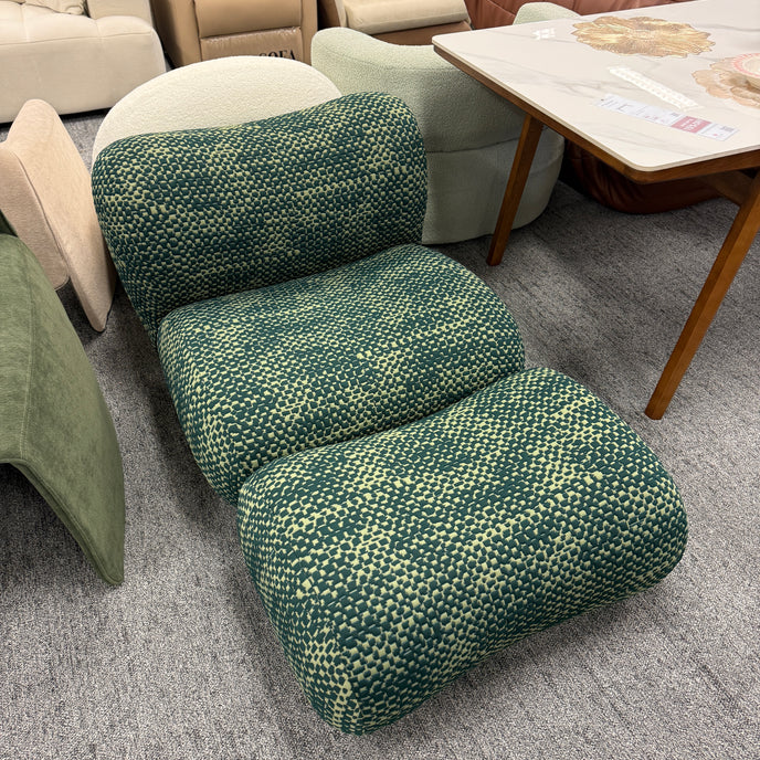 Green Cotton-Linen Molded Foam Bubble Lounge Chair with Ottoman