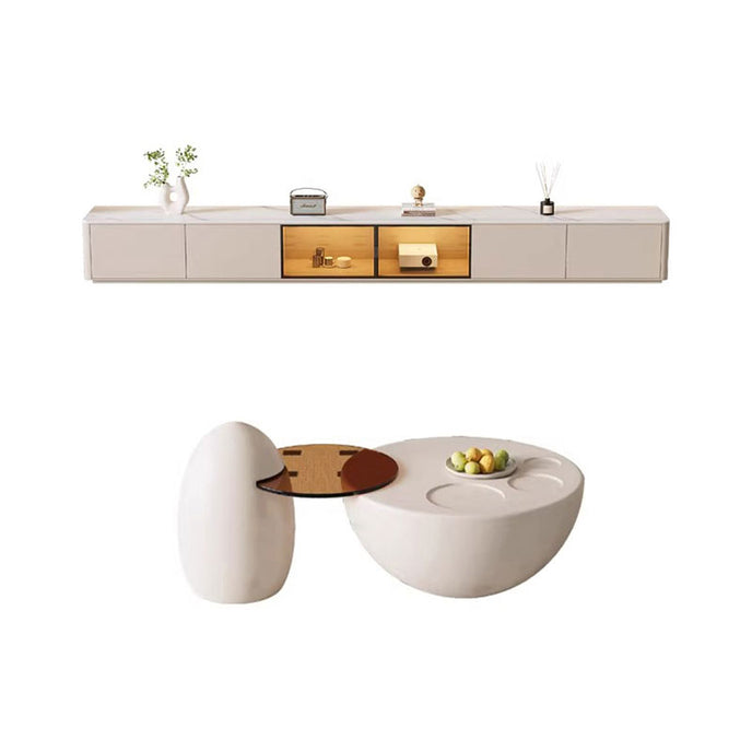 Bundle Deal Cream White Coffee Table+Glass Door Cabinet TV Cabinet
