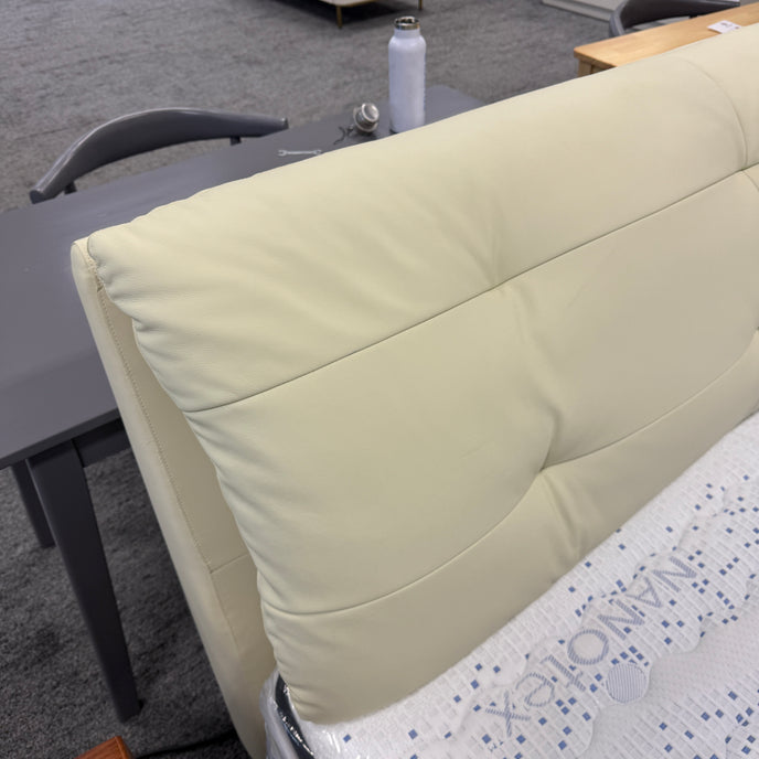 Genuine Leather/Cream White/Soft-Covered/Solid Wood Bed/153/183