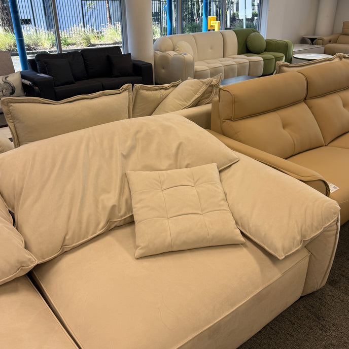 Elevate your living space with our Elephant Ear Sofa, expertly crafted in premium suede fabric that effortlessly blends with any interior style. Its timeless light beige hue and contemporary silhouette make it the ideal choice for modern, Scandinavian, bohemian, or minimalist decors - truly a chameleon in home furnishings.