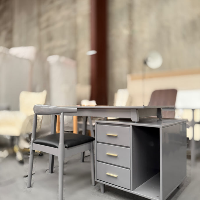 Gray Solid Wood Desk/Bucket Cabinet/Chair