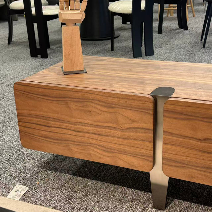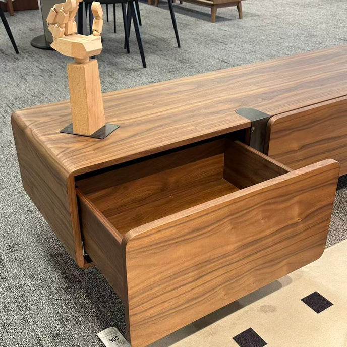 Walnut Grain TV Console with Drawers & Brushed Black Titanium Accents