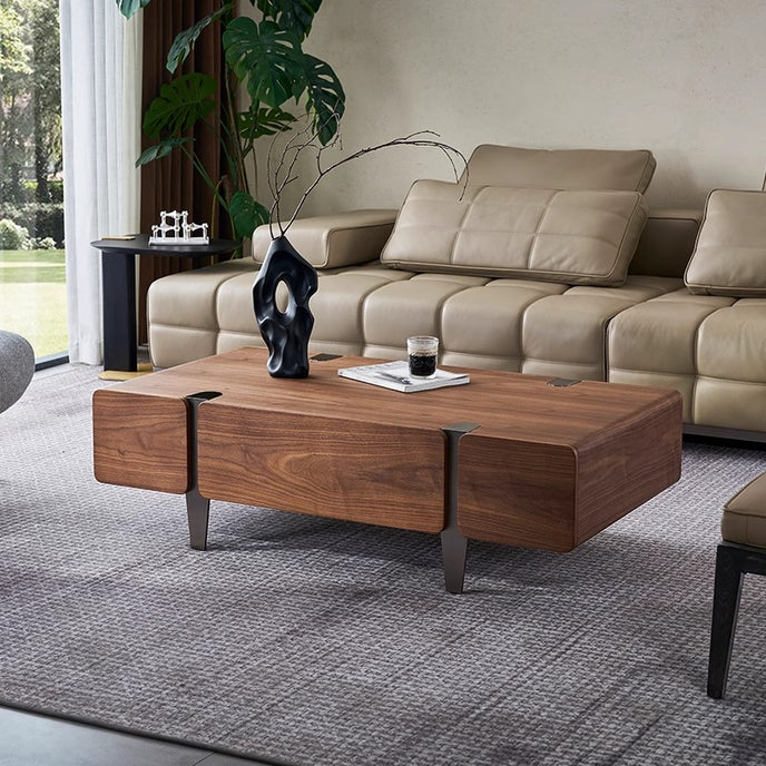 Elevate your living space with this sophisticated walnut grain coffee table featuring sleek brushed black titanium accents, a perfect harmony of natural elegance and contemporary industrial design. Crafted with premium walnut veneer surfaces and durable black titanium-finished legs, this striking centerpiece showcases rich woodgrain textures contrasted by modern metallic elements, creating visual interest while maintaining timeless versatility. The warm walnut tones complement both light and dark color palettes, effortlessly blending with mid-century modern, Scandinavian, or urban loft decor styles, while the titanium's subtle sheen adds just the right amount of metallic refinement without overwhelming your space. Its balanced proportions and clean lines make it ideal for anchoring your seating area, pairing beautifully with leather sofas for a luxurious touch or linen sectionals for organic-modern appeal, serving as both a functional surface and an artistic statement that transitions seamlessly through evolving design trends. The thoughtful material combination ensures this table becomes a focal point that ties your living room together, offering just enough contrast to stand out yet remaining neutral enough to adapt to seasonal decor changes, from minimalist winter arrangements to vibrant summer styling.