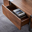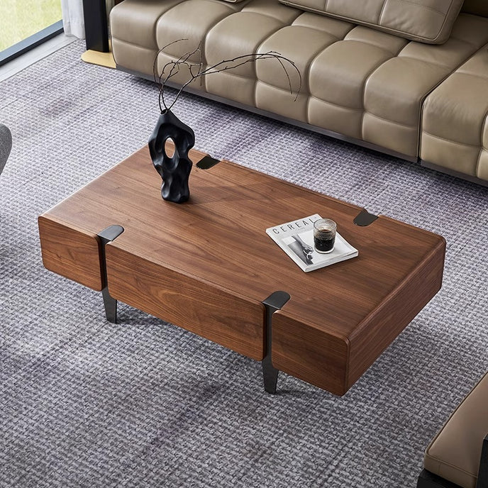 Pre Sale Walnut Grain Coffee Table with Brushed Black Titanium Accents