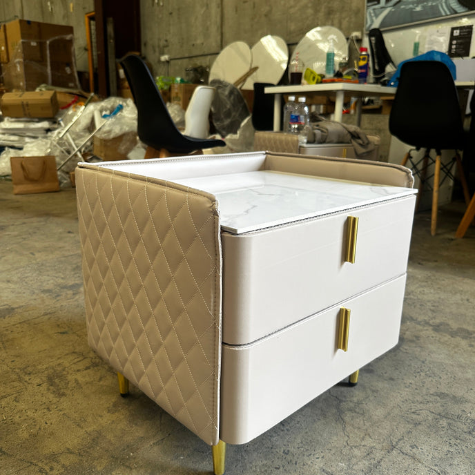 The quality of a piece of furniture is not only determined by the manufacturing process, but also by the material selection. Our bedside table uses rock panels as the countertop, which have many advantages such as high temperature resistance, scratch resistance, and corrosion resistance. The frame is made of solid wood board material to make the product more stylish and durable. The veneer is made of microfiber leather, which has a delicate and tough texture. The drawer is made of solid wood material, which is more sturdy and durable. The carbon steel cabinet legs make the entire coffee table look more fashionable.