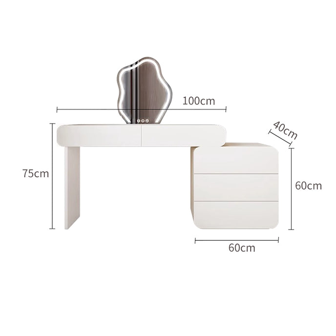 Beige Cloud Mirror Dressing Table with Three-Drawer Cabinet and Stool Set