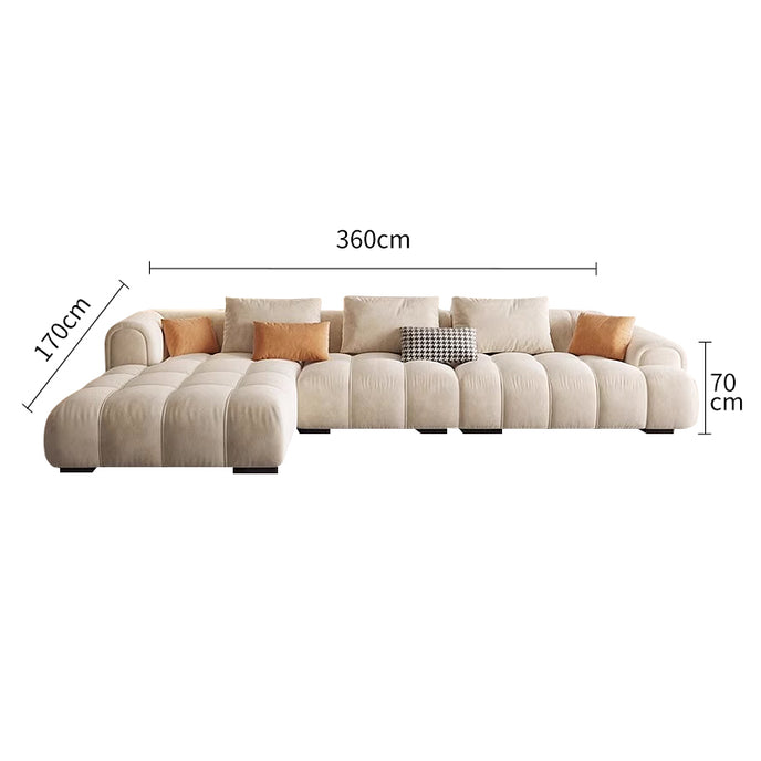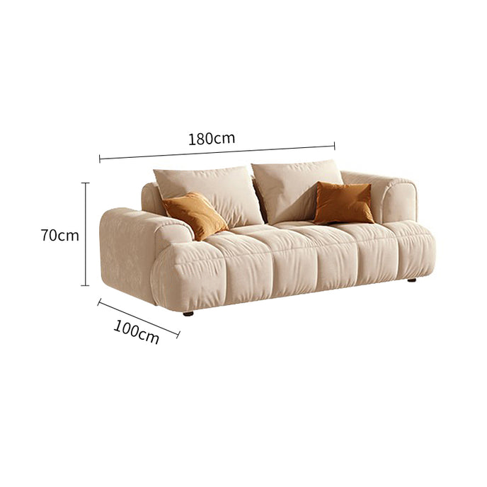 Crafted from ultra-soft milk velvet fabric, this sofa offers an exceptionally smooth and cloud-like tactile experience. The innovative textile features temperature-regulating properties that provide warmth in winter and coolness in summer. Enhanced with anti-pilling technology and stain-resistant treatment, the fabric maintains its luxurious appearance while being practical for daily use. High-resiliency sponge filling ensures optimal support without compromising comfort.