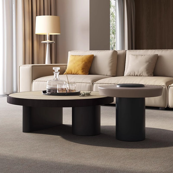 Crafted with durable sintered stone tops that mimic the rich texture of natural travertine, these tables offer exceptional scratch and heat resistance while being easy to maintain. The nesting design allows the smaller table to slide underneath the larger one, perfect for saving space when not in use or creating layered dimension when needed.