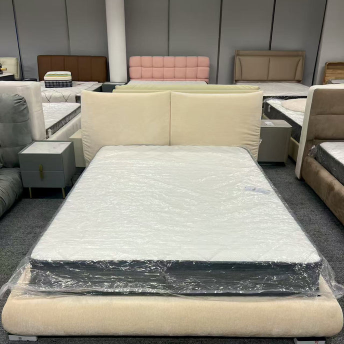 Crafted for elegance and versatility, this handmade solid wood bed features a plush chenille-upholstered headboard that can be gently bent or folded to transform its shape. Whether you prefer a high backrest for reading or a sleek low profile for minimalism, the flexible design adapts effortlessly to your needs.