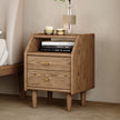 Walnut-Toned Ash Wood Nightstand with Two Drawers