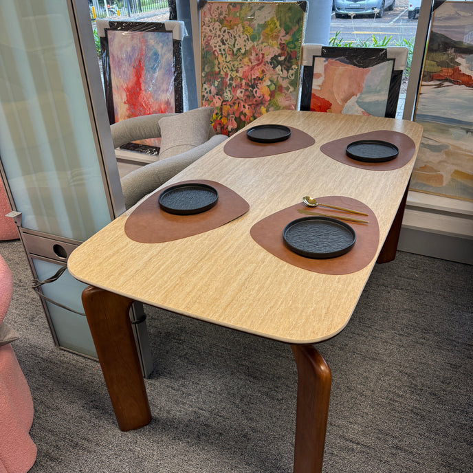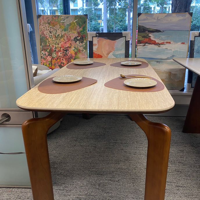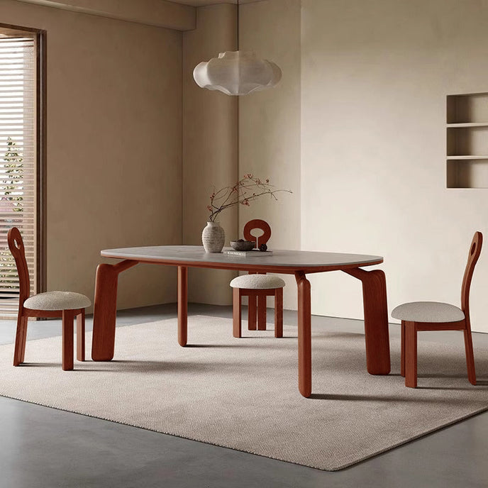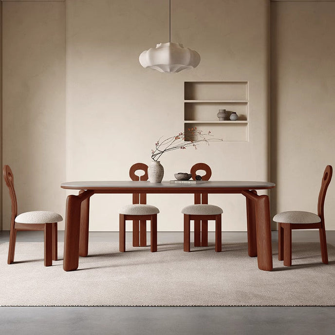 The quality of a piece of furniture depends not only on its craftsmanship but most importantly on material selection. Our dining table uses a stone surface, which has many advantages such as high-temperature resistance, scratch resistance, and corrosion resistance. The solid wood frame as a support increases the table's stability and safety.