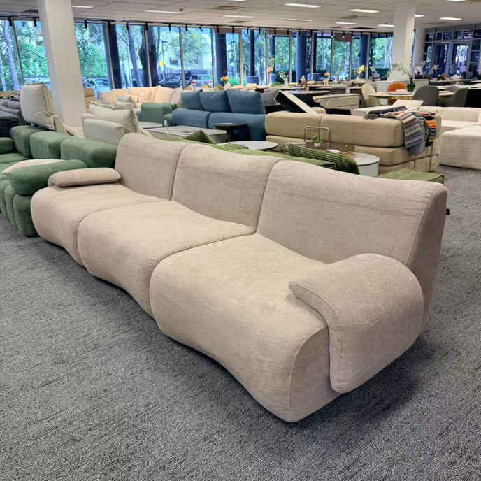 Elevate your living space with this exquisitely crafted compression sofa. It is upholstered in a sumptuous bamboo-jacquard plush fabric, which combines the visual intrigue of a natural texture with an incredibly soft and inviting feel. Featuring two sturdy arms, this three-seater sofa offers ample and comfortable seating for family and guests.