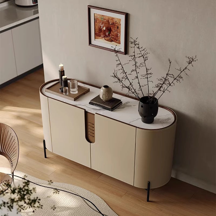 This Beige Two-Door Sideboard masters the art of understated modern style. Its clean, uncluttered lines and soft, neutral beige hue create a sense of calm and spaciousness, making it a versatile anchor for any contemporary dining area or kitchen. The symmetrical two-door design offers ample concealed storage for dinnerware, linens, and kitchen essentials, ensuring a tidy and streamlined look. To enhance its minimalist appeal, style the top with a curated selection: a linear sculptural vase, a stack of art books, and a small tray for keys or candles. Pair it with a sleek dining table and chairs in complementary woods or metals, allowing the sideboard to serve as both a functional hub and a subtle statement of refined, effortless living.