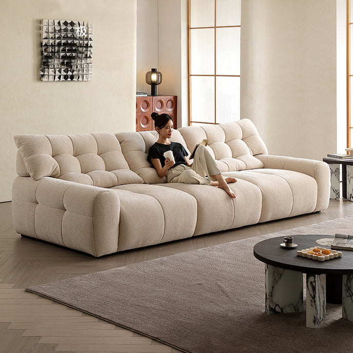 Milky White Chenille Straight 3-4 Seater Sofa
