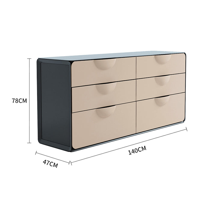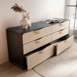 This Six-Drawer Sideboard is a minimalist's dream realized in a bold material palette. The dramatic interplay between the black top and the off-white base creates a striking, graphic presence that instantly defines a space. The six deep drawers provide not just abundant storage, but also a clean, flush facade without handles or clutter. This piece is designed for pure function and high-impact style. Place it in a modern dining room or living room with white walls and light wood floors. Style it with absolute restraint: a single, sculptural object on top (like a black ceramic vessel) and perhaps a large-scale monochromatic artwork above. It functions as the quiet yet powerful anchor of a room where every element is intentional and every line is clean.