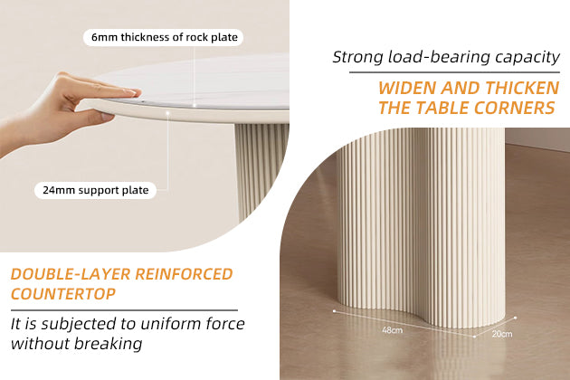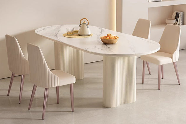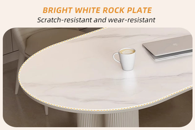 Inspired by nature’s quiet majesty, the Snow Mountain White Rock Plate Dining Table brings serene elegance to your home. The tabletop features a luxurious white sintered stone surface, reminiscent of snow-capped peaks, with subtle gray veining that adds depth and sophistication.