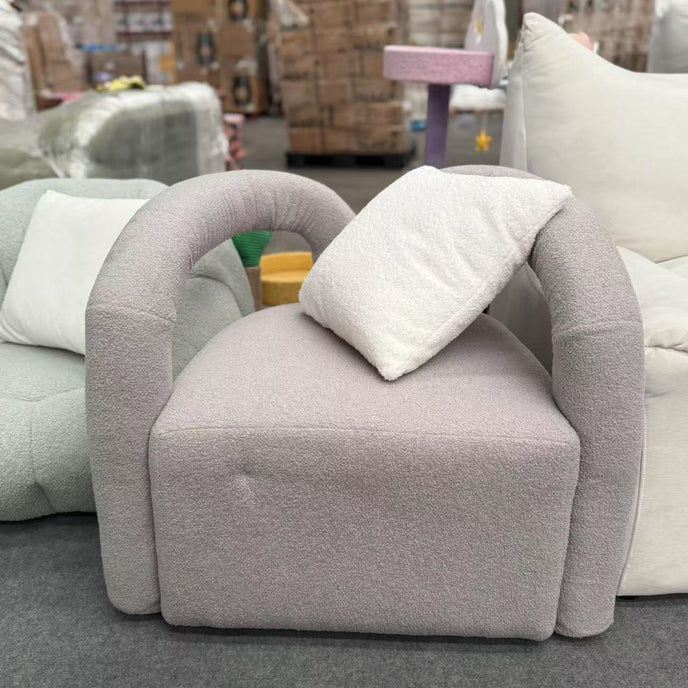 Discover the ultimate in relaxation and modern design with our Soft Curved Lounge Chair, sumptuously upholstered in luxurious Lamb Plush Fabric. This isn't just a chair; it's an invitation to unwind, a cloud-like haven crafted to bring serene comfort and organic elegance to your living space.