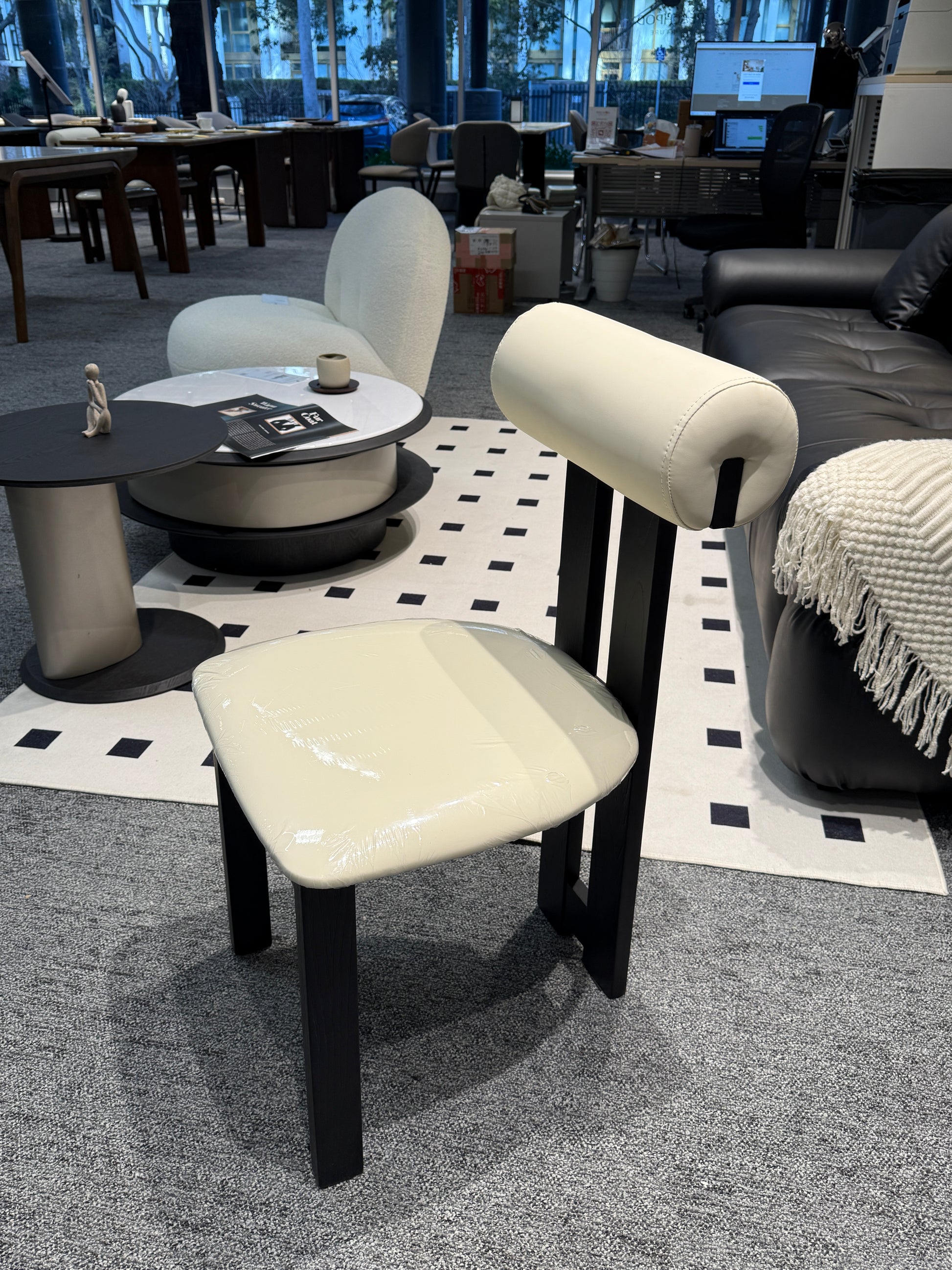 The overall lines of the dining chair are simple and clear, ergonomically designed, presenting a natural and soft feeling that significantly enhances the warmth of mealtime gatherings.