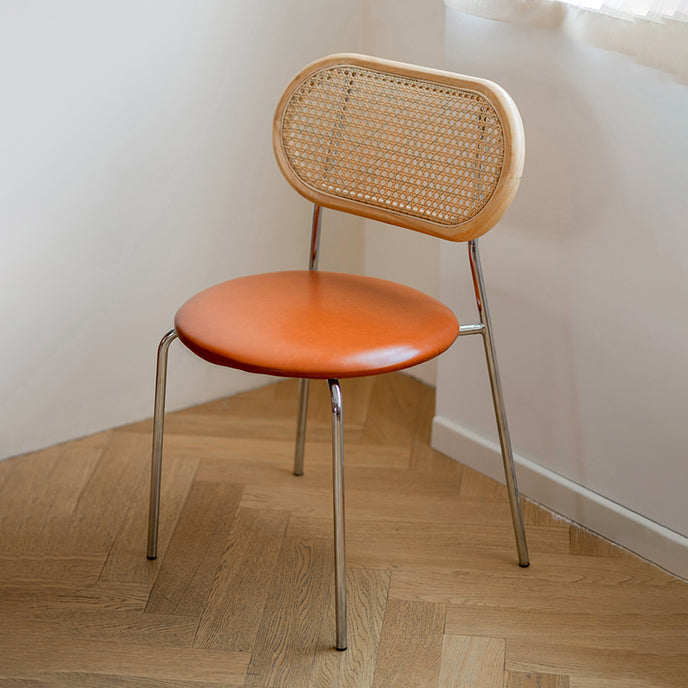 Define your dining area with the intelligent design of this Upholstered Dining Chair. It masterfully breaks down its components: the durable comfort of the tan seat, the breathable visual interest of the woven back, and the strong, clean lines of the metal base. This honest material palette makes it exceptionally versatile for contemporary interiors. For a sharp, urban look, match them with a concrete-top or blackened steel-framed table. Keep the palette neutral with whites, greys, and blacks, allowing the warm tan hue of the chair to be the sole source of color warmth. Add a single, large-scale graphic artwork and minimalist lighting to complete the scene. This chair proves that practicality in the city can be achieved with sophistication, offering lasting comfort without compromising on a clean, composed aesthetic.