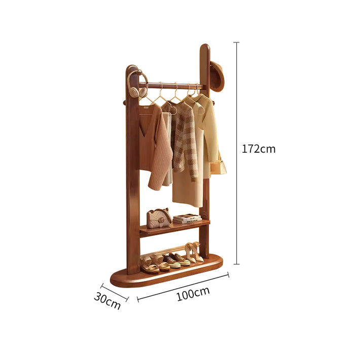 This multi-functional solid wood coat rack features a high-quality solid wood frame and eco-friendly paint. It offers strong load-bearing capacity, is environmentally friendly, and durable. The design includes multiple hooks and shelf storage, meeting various storage needs. The thickened hanging rod and solid wood base provide additional stability and load-bearing capability. Classic colors such as walnut, white, and natural wood add a touch of fashion to your home. The multi-functional design makes it suitable for storing clothes, hats, and even shoes.