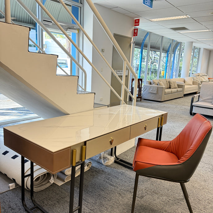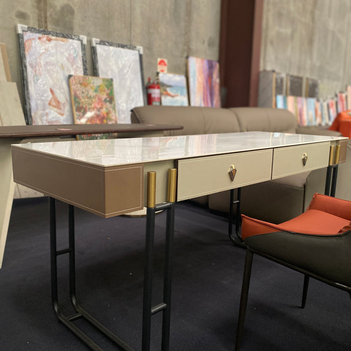 White Rock Board/Saddle Leather/Carbon Steel/Desk+Chair Two-Piece Set