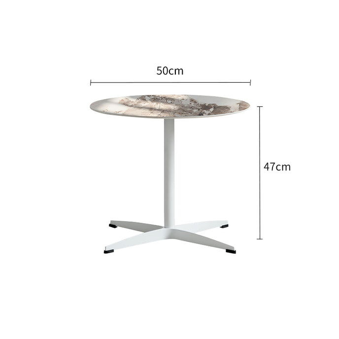 This exquisite side table is a functional piece of art, crafted from a unique luxury stone whose surface evokes the serene beauty of a snow-capped mountain range at dawn. The "Snowy Mountain Blue" stone features a captivating interplay of cool white bases with elegant, flowing veins of cerulean and slate blue, ensuring that no two pieces are exactly alike. Each tabletop is a unique canvas painted by nature, polished to a smooth, cool finish that highlights the stone's natural depth and crystalline sparkle.