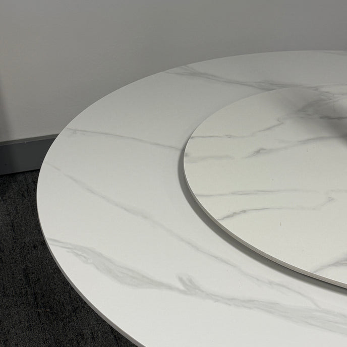 | Dimensions: | Dining chair: 50cm L x 60cm W x 92cm H Dining table: 130/150cm D x 76 cm H Turntable: 80cm D |