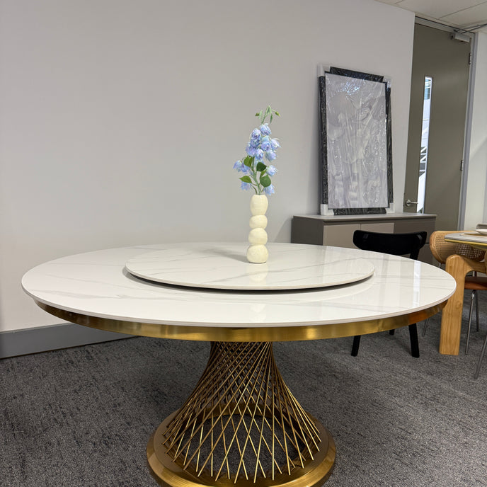 Bring modern elegance to your dining space with the White Round Rock Plate Gold Base Dining Table — a luxurious blend of sleek design and everyday functionality.