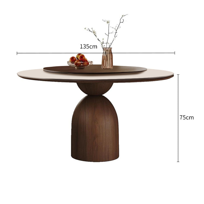 Round Solid Wood/Rock Top Dining Table with Lazy Susan